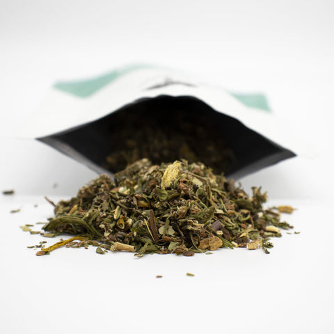 Élaborée à partir de plantes issues de l’agriculture biologique, cette recette associe cannelle, gingembre, absinthe et chanvre, des ingrédients traditionnellement utilisés en médecine ayurvédique pour stimuler le métabolisme, favoriser la digestion et réduire les spasmes abdominaux.